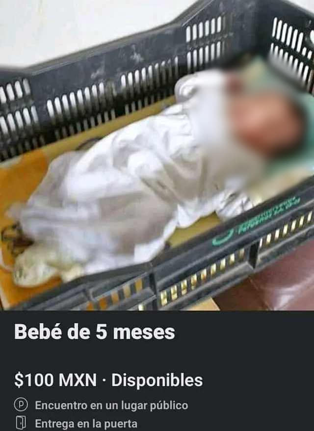 Por medio de la red social Facebook, una usuaria llamada Michelle Zuñiga, realizo una publicacion en donde puso en «venta» a su bebé de cinco meses de nacido, en la capital hidalguense , pues argumenta que , «sale muy caro» mantenerlo y no cuenta con el apoyo del padre del menor ni de su familia.